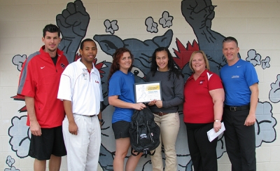 From left: Loranger High School Basketball Coach Sean Shields, Assistant Principal Torrence Joseph, North Oaks Sports Medicine Athletic Trainer Whitney Adams, Chelsea James, Volleyball Coach Anna Billiot and North Oaks Sports Medicine Supervisor Jeff Schmitt.