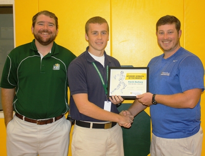 From left: Walker High School Football and Powerlifting Assistant Coach Ross Levy, Patrik Zachary and North Oaks Sports Medicine Athletic Trainer Nate Borget.
