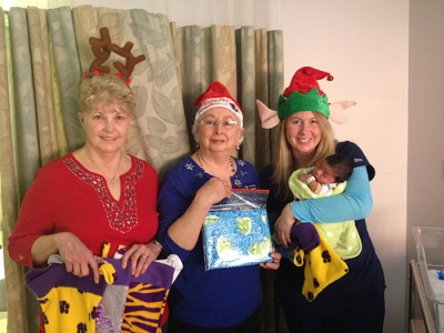 On Dec. 19, The Blood Center staff made a special delivery of holiday stockings, socks and handmade pillowcases to Women & Children’s Services patients at North Oaks Medical Center.