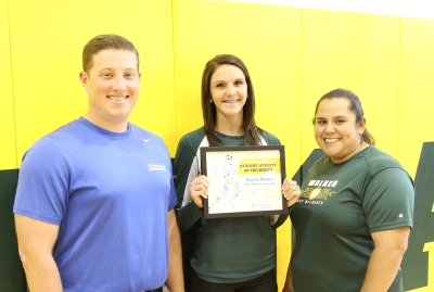 From left, North Oaks Sports Medicine Athletic Trainer Nathan Borget, honoree Baylie Stears and Walker High School Head Volleyball Coach Nicole Dufour.
