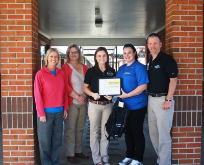 From left are Albany High School Head Girls Basketball Coach Stacy Darouse, Albany High Principal Jill Prokop, Lauren Thompson, Sports Medicine Athletic Trainer Mandy Trepagnier and North Oaks Sports Medicine Supervisor Jeff Schmitt.