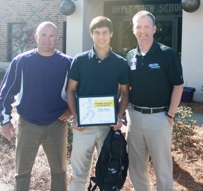 From left are Doyle High School Head Baseball Coach Tim Beatty, Tyler Pigott and North Oaks Sports Medicine Supervisor Jeff Schmitt.