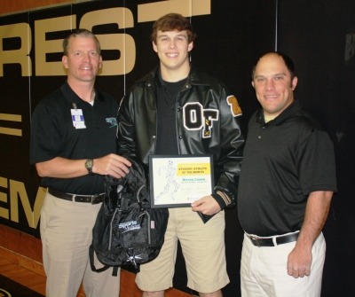 From left are North Oaks Sports Medicine Supervisor Jeff Schmitt, Steven Liuzza and Oak Forest Academy Head Baseball Coach Tony Salim.