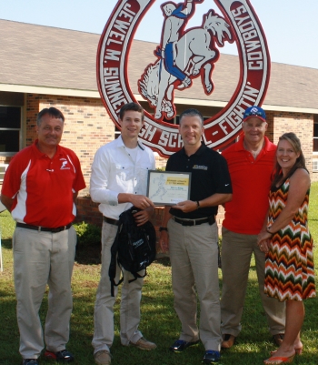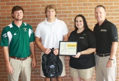 From left are Jewel Sumner High School Coach Jay Stuckey, Student Athlete of the Month Devin King, North Oaks Sports Medicine Supervisor Jeff Schmitt, and Devin’s parents, Floyd and Nicole King.