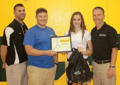 From left are Walker High School Girls Basketball Head Coach Korey Arnold, North Oaks Sports Medicine Athletic Trainer Nate Borgett, Student Athlete of the Month Jamie Gibson and North Oaks Sports Medicine Supervisor Jeff Schmitt.