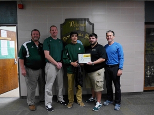 From left are Ponchatoula High School Principal Daniel Strickland, Ponchatoula High School Basketball Coach Tom Taylor, Gabe Garcia, North Oaks Sports Medicine Athletic Trainer Jonathan Gantt and North Oaks Sports Medicine Supervisor Jeff Schmitt.