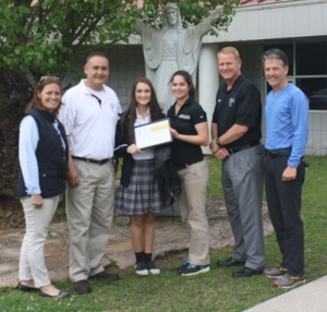From left are St. Thomas Tennis Coach Grace Gamble, St. Thomas Principal Jose Becerra, Taylor Kinnison, North Oaks Sports Medicine Athletic Trainer Vanessa Taromina, St. Thomas Athletic Director John White and North Oaks Sports Medicine Supervisor Jeff Schmitt.