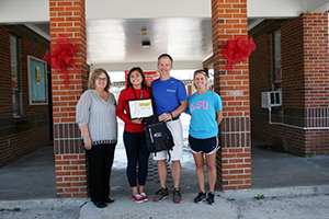 From left are: North Oaks Sports Medicine Athletic Trainer Nate Borget, Evan Bergeron, Walker High School Assistant Principal Lisette Manuel and North Oaks Sports Medicine Supervisor Jeff Schmitt.