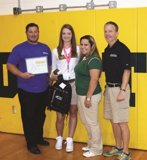 From left are North Oaks Sports Medicine Athletic Trainer Nate Borget, September Student-Athlete of the Month Ashlyn Donaldson, Walker High School Head Volleyball Coach Nicole Dufour and North Oaks Sports Medicine Supervisor Jeff Schmitt.