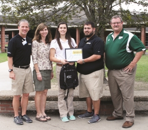From left are North Oaks Sports Medicine Supervisor Jeff Schmitt, Ponchatoula High School Head Volleyball Coach Lauren Long, September Student-Athlete of the Month Emily Waddell, North Oaks Sports Medicine Athletic Trainer Jonathan Gantt and Ponchatoula High School Principal Danny Williams.