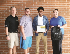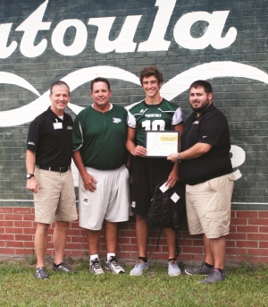 From left are North Oaks Sports Medicine Supervisor Jeff Schmitt, Ponchatoula High School Head Football Coach Hank Tierney, September Student-Athlete of the Month Jeb Kraft, and North Oaks Sports Medicine Athletic Trainer Jonathan Gantt.