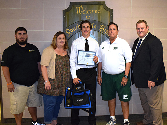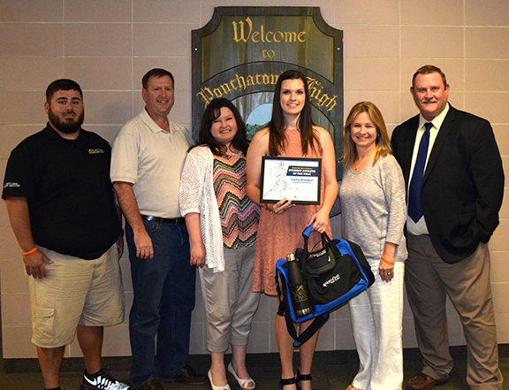 From left are North Oaks Sports Medicine Athletic Trainer Jonathan Gantt, George Toni and Emily Waddell, Ponchatoula High School Assistant Volleyball Coach Tricia Landaiche and Ponchatoula High School Principal Danny Strickland.