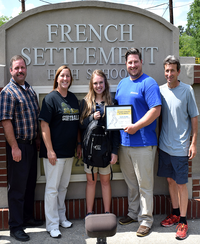From left are: French Settlement High School Principal Lance Hutson, French Settlement High School Head Softball Coach/Teacher Susan Covington, Callie Roddy, North Oaks Sports Medicine Athletic Trainer Nate Borget and French Settlement High School Athletic Director Jaime Gautreau.