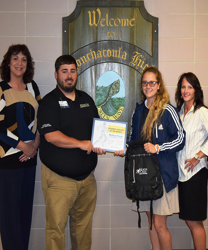 From left are: Ponchatoula High School Assistant Principal Mary Beth Crovetto, North Oaks Sports Medicine Athletic Trainer Jonathan Gantt, Mallory Vining and Ponchatoula High School Head Softball Coach Hollie Teague.