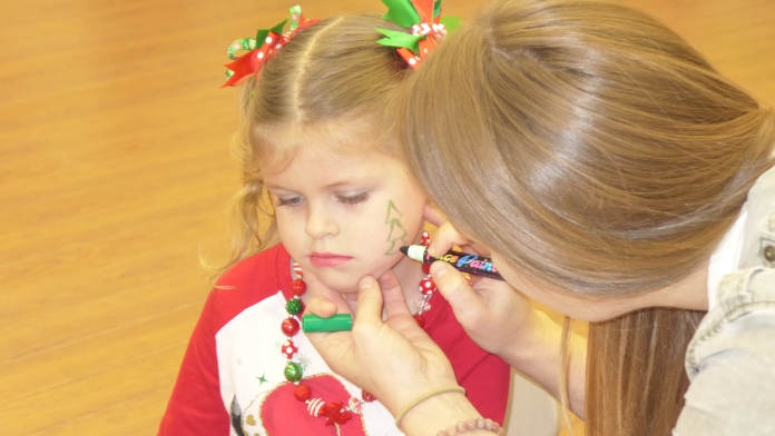 Other guests were excited to visit with Santa, and will receive a keepsake photo. They were also treated to holiday music and videos, face painting, games, craft-making and refreshments provided by Chick-fil-A.