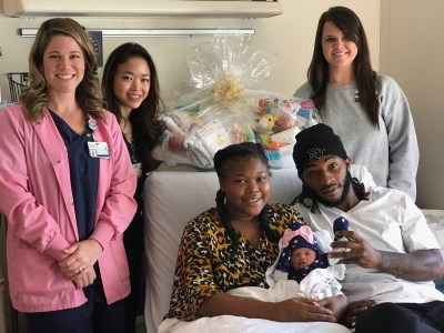 Dang joined North Oaks’ labor & delivery and nursery staff the morning of Jan. 2 to shower Clarielle with a “welcome basket” of goodies and essentials from the hospital.