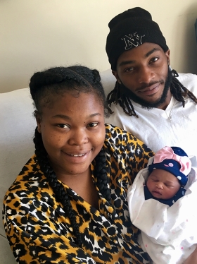 After 8 hours of active labor for LaFrance, baby girl Clarielle White arrived at 6:59 p.m. on Jan. 1 to ring in the new year with her parents and 3-year-old sibling Sha’Niyah, who is “very happy to be a big sister.” Clarielle was delivered by Obstetrician/Gynecologist Diana Dang, MD, and weighed 6 lbs., 8.3 oz. with a length of 18½ inches.