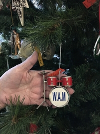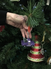 A miniature red drum set, emblazoned with the initials, “WAM,” and a vintage, purple Louisiana State University (LSU) truck hauling a snow-covered tree were among the ornaments added to the collection this year.