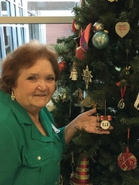 Mollie attended the memory tree gathering with their daughter, Pam. Together, they found the perfect spot on the tree for Gobel’s LSU truck ornament.