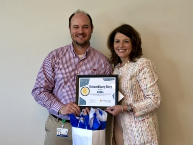 North Oaks Health System President/CEO Michele Sutton recently recognized Digital Media & Production Specialist DJ Miller with an Extraordinary Story Award for his compassion and courtesy shown to our patients and visitors.