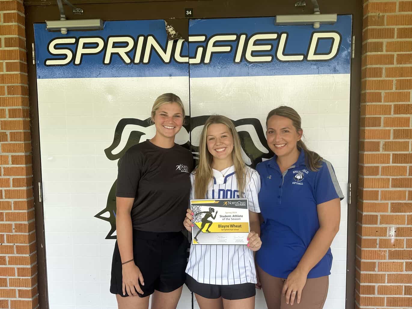 From left: North Oaks Sports Medicine Certified Athletic Trainer Haleigh Laylle, student-athlete honoree Blayre Wheat and Springfield High School Head Softball Coach Ashley Ledet.