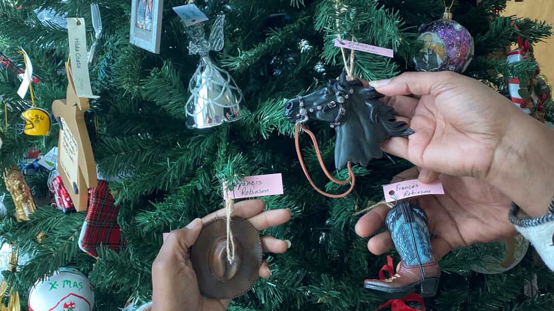 During the remembrance celebration, Bernice, Darren and her sister Beatrice Scott, who also assisted with Robinson’s care, hung three special ornaments on the memory tree as symbols of Robinson’s greatest interests in life: a cowboy hat, a boot and a black stallion, representing his love for horses and his entrepreneurial spirit.
