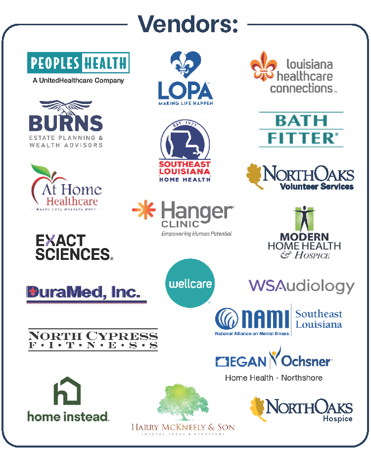 SpeakersHear from a variety of health professionals about staying healthy as you age. Free Screenings AvailableGet blood pressure checked, learn about fall risk, diabetes risk, heart health, and more. Connect with ResourcesFind local services and products all in one place. Fun and FreebiesEnjoy free giveaways and useful information from community vendors. | ![]() |
