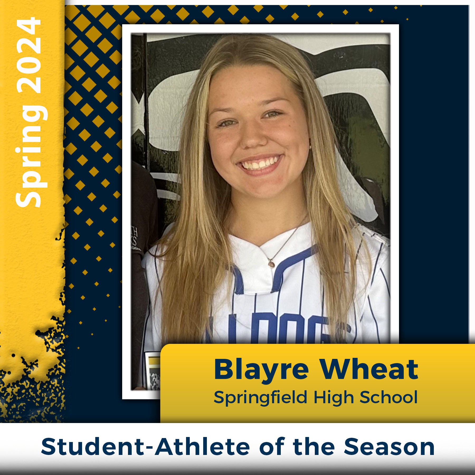 Aspiring future nurse Blayre Wheat graduated from Springfield High School with a 4.0 GPA and will attend Southeastern Louisiana University in the fall. She is the daughter of Keri Wheat. Throughout all four years of high school, Wheat displayed her versatility as a basketball guard and softball outfielder for the Lady Bulldogs. In Wheat’s senior softball season, she stole 16 bases and posted a .200 batting average with a .564 OPS.